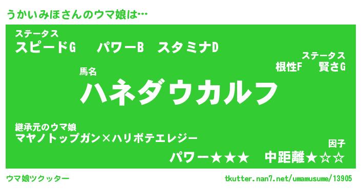| ファンタジー風あだ名 | 『ウカフェル』『エターナルウカイミホー』 |