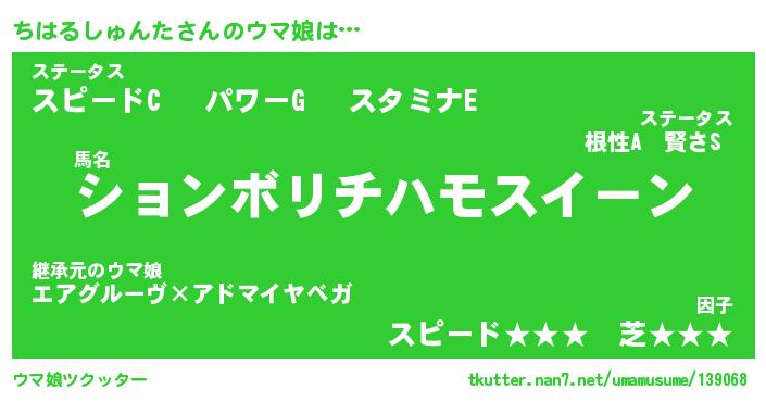 | 自動車の名前っぽいあだ名 | 『チハティマ』『チスラー』『デミチ』 |