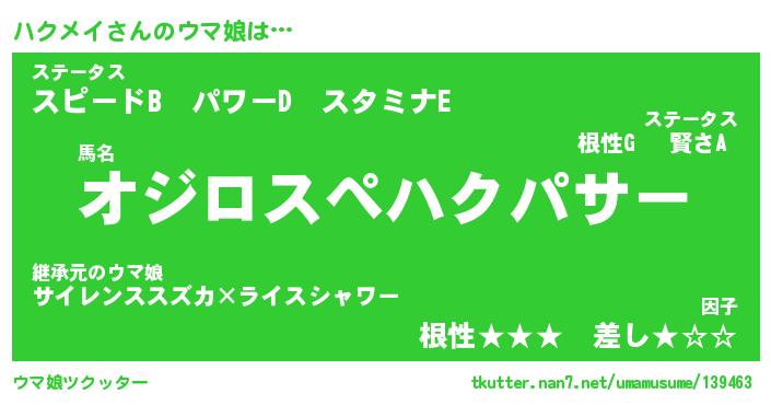 | ポケモン風あだ名 | 『ハクチュウ』『ハクメダネ』 |