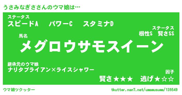 | ポケモン風あだ名 | 『ウサチュウ』『ウサミダネ』 |