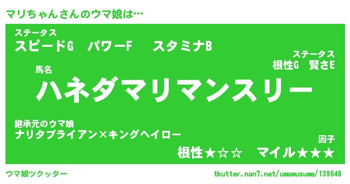 | ファンタジー風あだ名 | 『マリフェル』『エターナルマリチャンー』 |