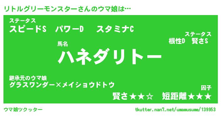 | ヒーロー風カッコイイあだ名 | 『スーパーリトルグリーモンスター』 |