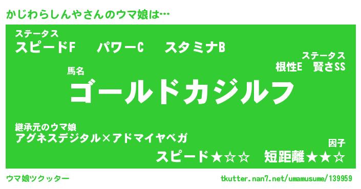 | 自動車の名前っぽいあだ名 | 『カジティマ』『カスラー』『カント』 |