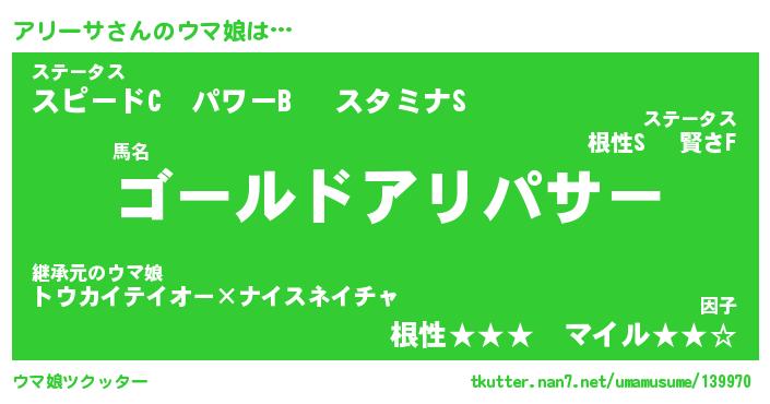 | 意味不明あだ名 | 『ペロリンアリーサ』『永久保存アリーサ』 |