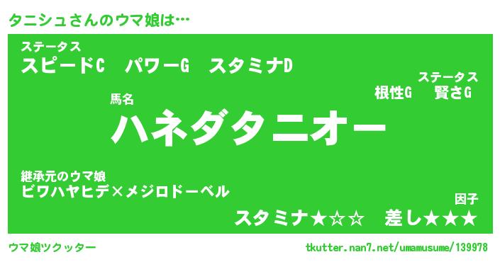 | 自動車の名前っぽいあだ名 | 『タニティマ』『タスラー』『デミタ』 |