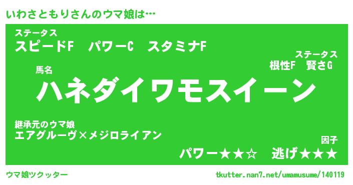 | 2回繰り返すあだ名 | 『いわいわ』『いいわわ』『ごそごそ』 |