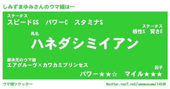 | ヒーロー風カッコイイあだ名 | 『スーパーシミズマユミ』『銀牙騎士シミ』 |