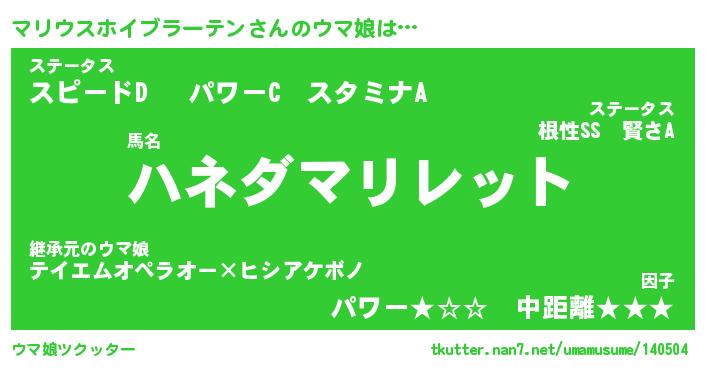 | ツイッター | マリウスホイブラーテンさんのツイッターID『namakemono_kun』 |