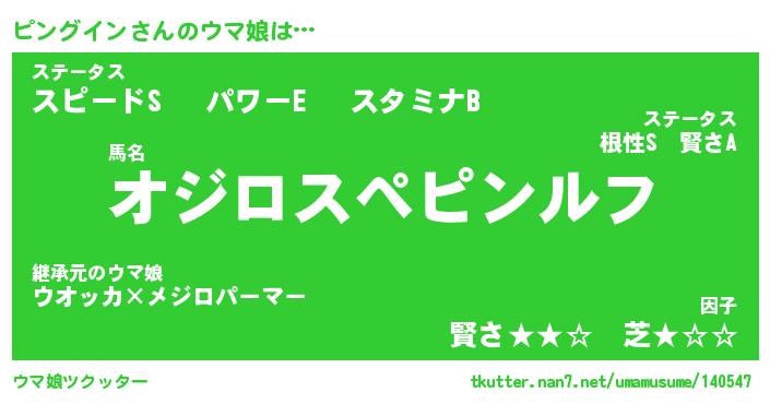 | 男性向けラノベタイトル風あだ名 | 『ピングインの憂鬱』 |