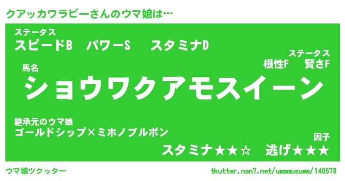 | ヘコむあだ名 | 『クアふぇ~』『つくし』『クア太郎』 |