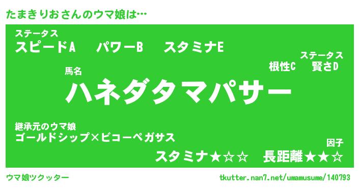 | ファンタジー風あだ名 | 『タマフェル』『エターナルタマキリオー』 |