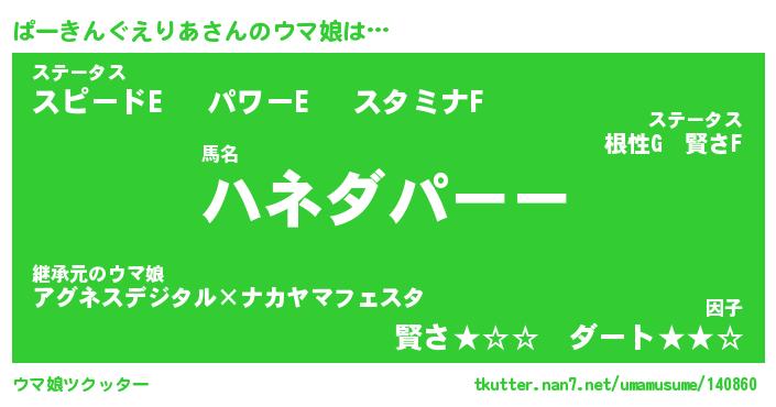 | 伝説のあだ名 | 『封印されしスナイパーぱーきんぐえりあ』 |