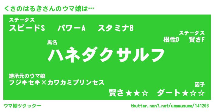 | 男性向けラノベタイトル風あだ名 | 『クサノハルキアートオンライン』 |
