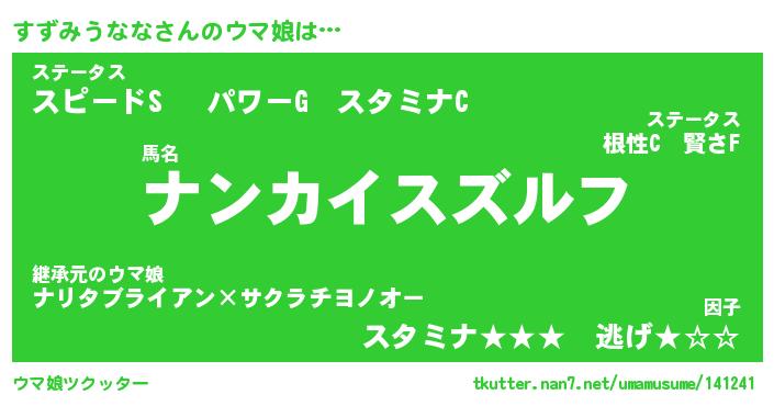 | 女子向けラノベタイトル風あだ名 | 『すずみうなな姫と円卓の騎士』 |