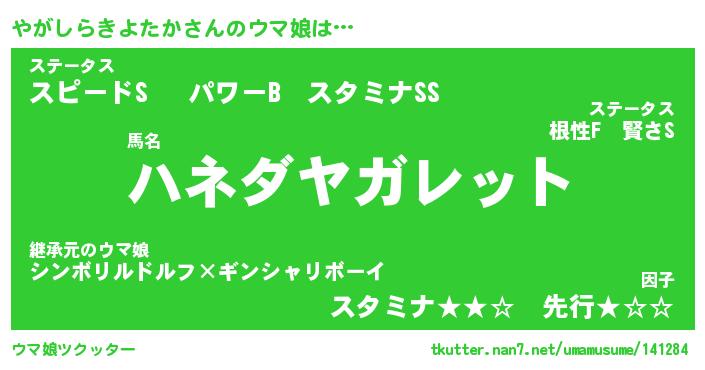 | ポケモン風あだ名 | 『ヤガチュウ』『ヤガシダネ』 |