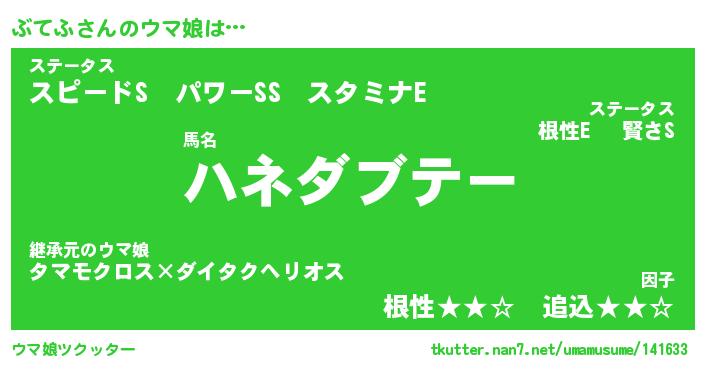 | ヒーロー風カッコイイあだ名 | 『スーパーブテフ』『ウルトラぶてふマン』 |