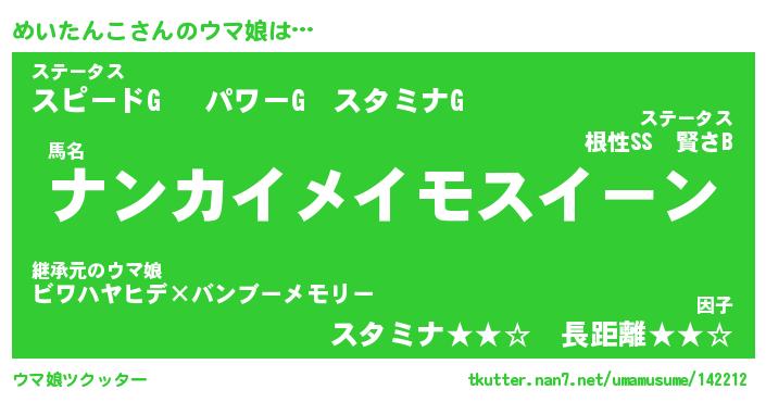 | 男性向けラノベタイトル風あだ名 | 『めいたんこの憂鬱』 |