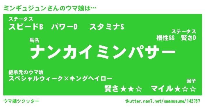 | ポケモン風あだ名 | 『ミンチュウ』『ミンギダネ』 |