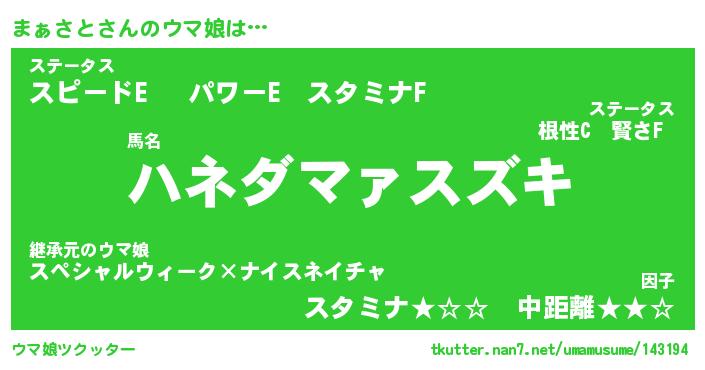 | 自動車の名前っぽいあだ名 | 『マァティマ』『マクア』『デミマ』 |