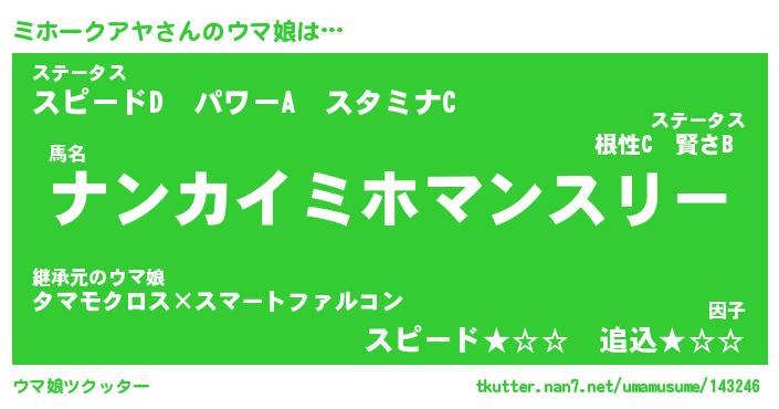| ヘコむあだ名 | 『ミホにゅー』『酢こんぶ』『ミホを』 |