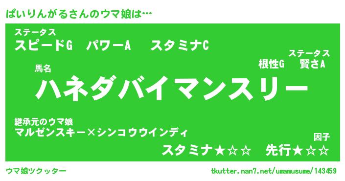 | 欧米人風あだ名 | 『マイケルばいりんがる』 |