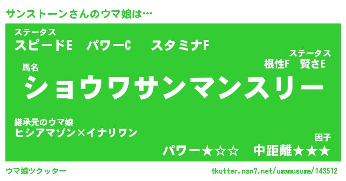 | 伝説のあだ名 | 『伝説のスナイパーサンストーン』 |