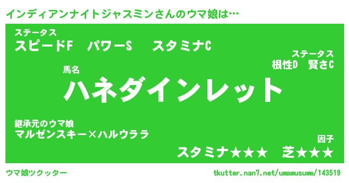 | ヒーロー風カッコイイあだ名 | 『スーパーインディアンナイトジャスミン』 |