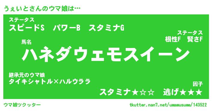 | 意味不明あだ名 | 『ペロリンうぇいと』『永久保存うぇいと』 |