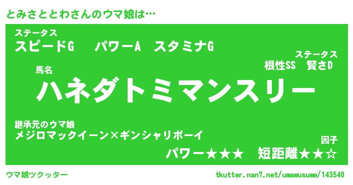 | 自動車の名前っぽいあだ名 | 『トミティマ』『トスラー』『トント』 |
