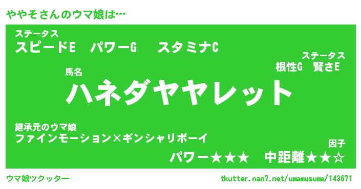 | ファンタジー風あだ名 | 『ヤヤフェル』『エターナルヤヤソー』 |