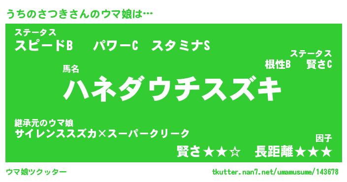 | ヒーロー風カッコイイあだ名 | 『スーパーウチノサツキ』『天弓騎士ウチ』 |