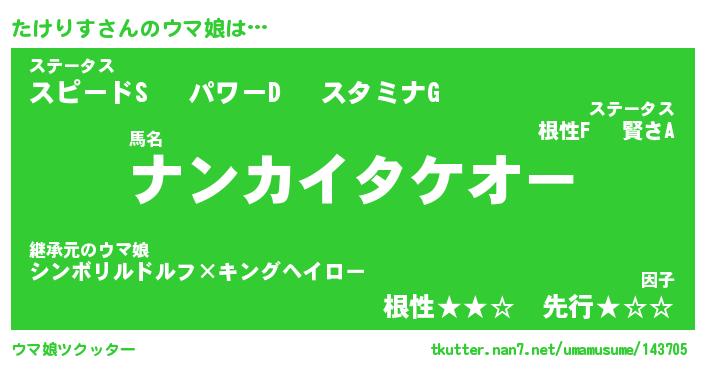 | ファンタジー風あだ名 | 『タケフェル』『エターナルタケリスー』 |