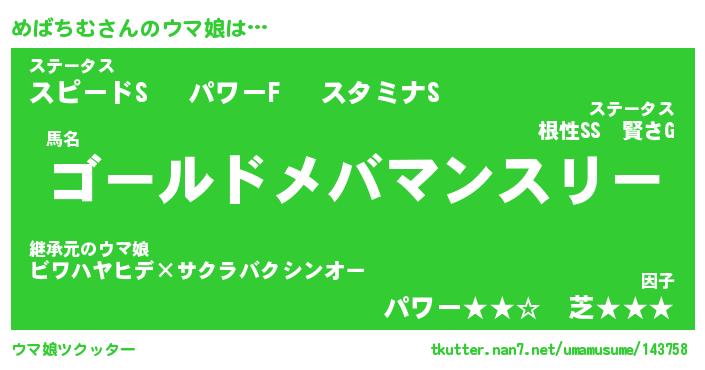 | 意味不明あだ名 | 『ペロリンめばちむ』『永久保存めばちむ』 |