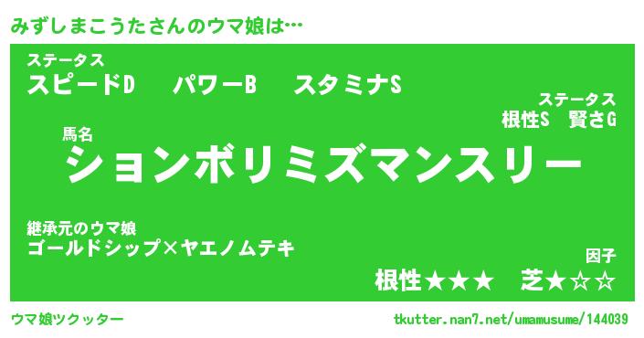 | ヘコむあだ名 | 『みずっふぃ~』『つくし』 |
