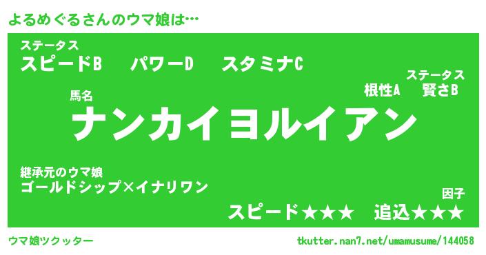 | ファンタジー風あだ名 | 『ヨルフェル』『エターナルヨルメグルー』 |