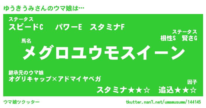 | ファンタジー風あだ名 | 『ユウフェル』『エターナルユウキウミー』 |