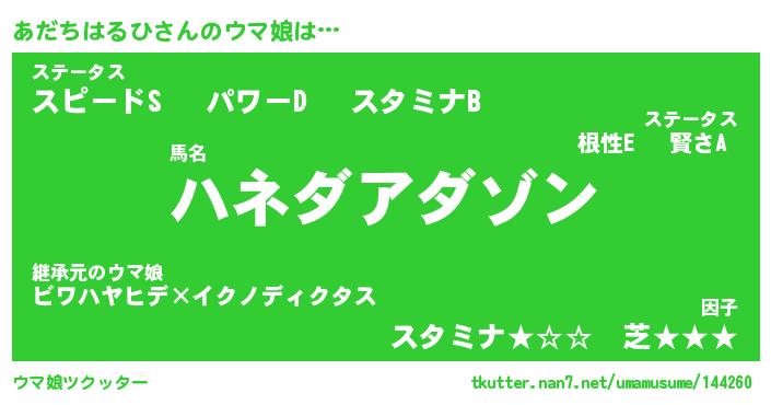 | ヘコむあだ名 | 『あだふぇ~』『つくし』『あだお』 |
