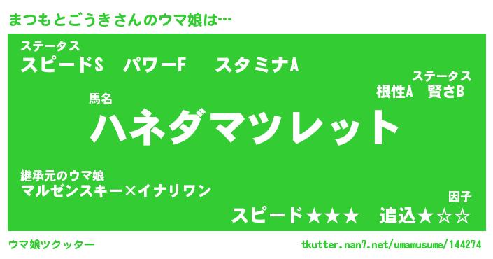 | ヘコむあだ名 | 『まつにゅー』『つくし』 |