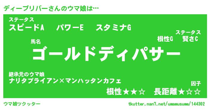 | 男性向けラノベタイトル風あだ名 | 『ディープリバーアートオンライン』 |