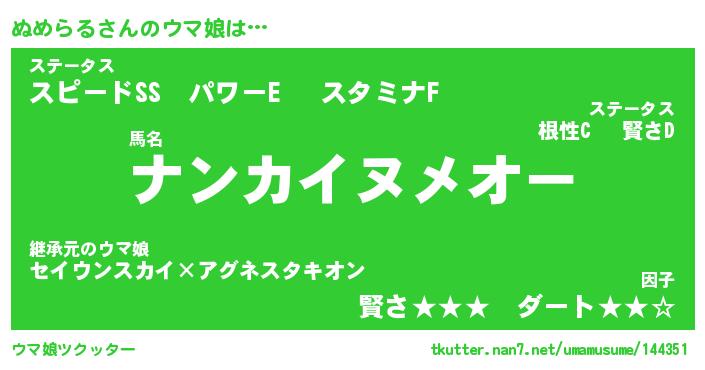| ファンタジー風あだ名 | 『ヌメフェル』『エターナルヌメラルー』 |