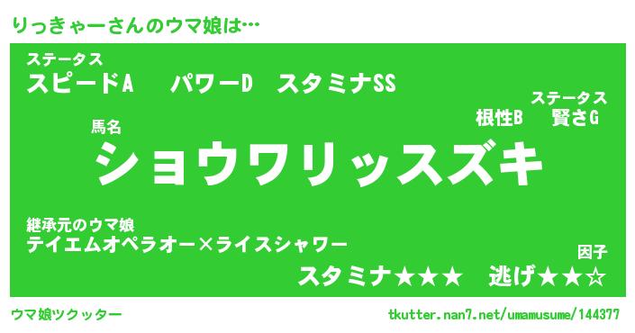 | 自動車の名前っぽいあだ名 | 『プリリッ』『リクア』『デミリ』 |