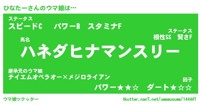 | ファンタジー風あだ名 | 『ヒナフェル』『エターナルヒナターー』 |