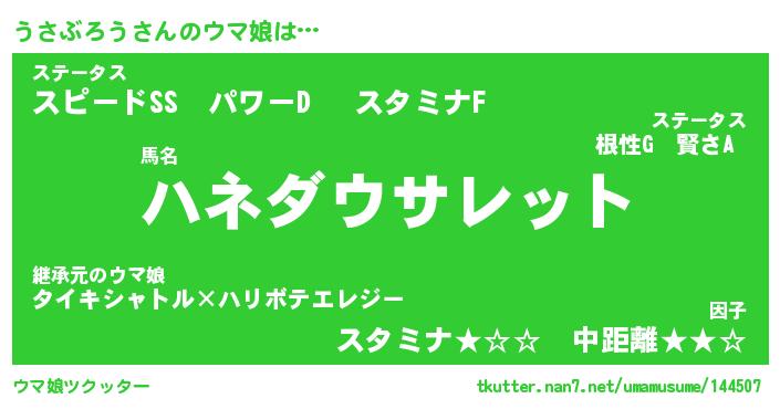 | 伝説のあだ名 | 『封印されしスナイパーうさぶろう』 |