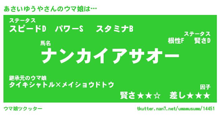 | 男性向けラノベタイトル風あだ名 | 『あさいゆうやの憂鬱』 |