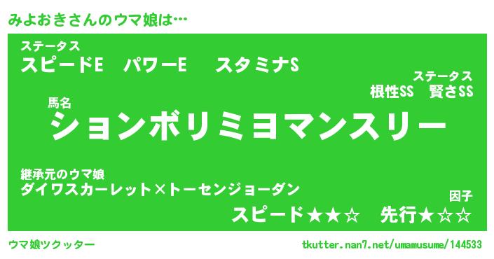 | 自動車の名前っぽいあだ名 | 『ミヨティマ』『ミスラー』『ミント』 |