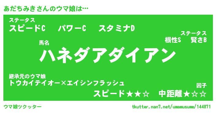 | ポケモン風あだ名 | 『アダチュウ』『アダチダネ』 |