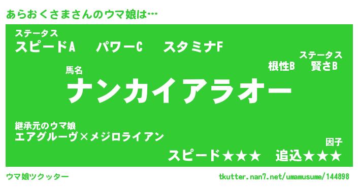 | ポケモン風あだ名 | 『アラチュウ』『アラオダネ』 |