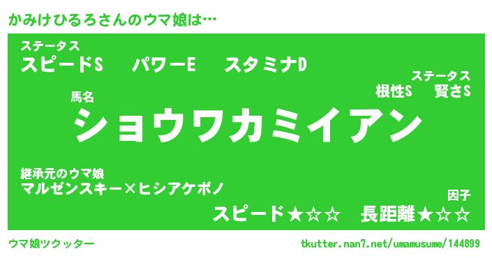 | 伝説のあだ名 | 『不死鳥のスナイパーかみけひるろ』 |