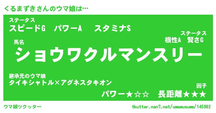 | ファンタジー風あだ名 | 『クルフェル』『エターナルクルマズキー』 |
