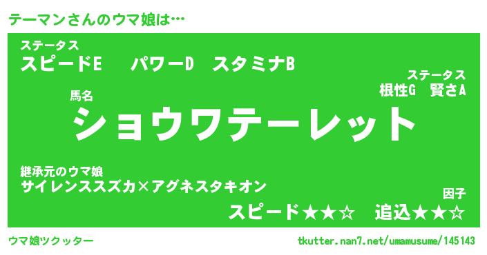 | 意味不明あだ名 | 『ペロリンテーマン』『永久保存テーマン』 |